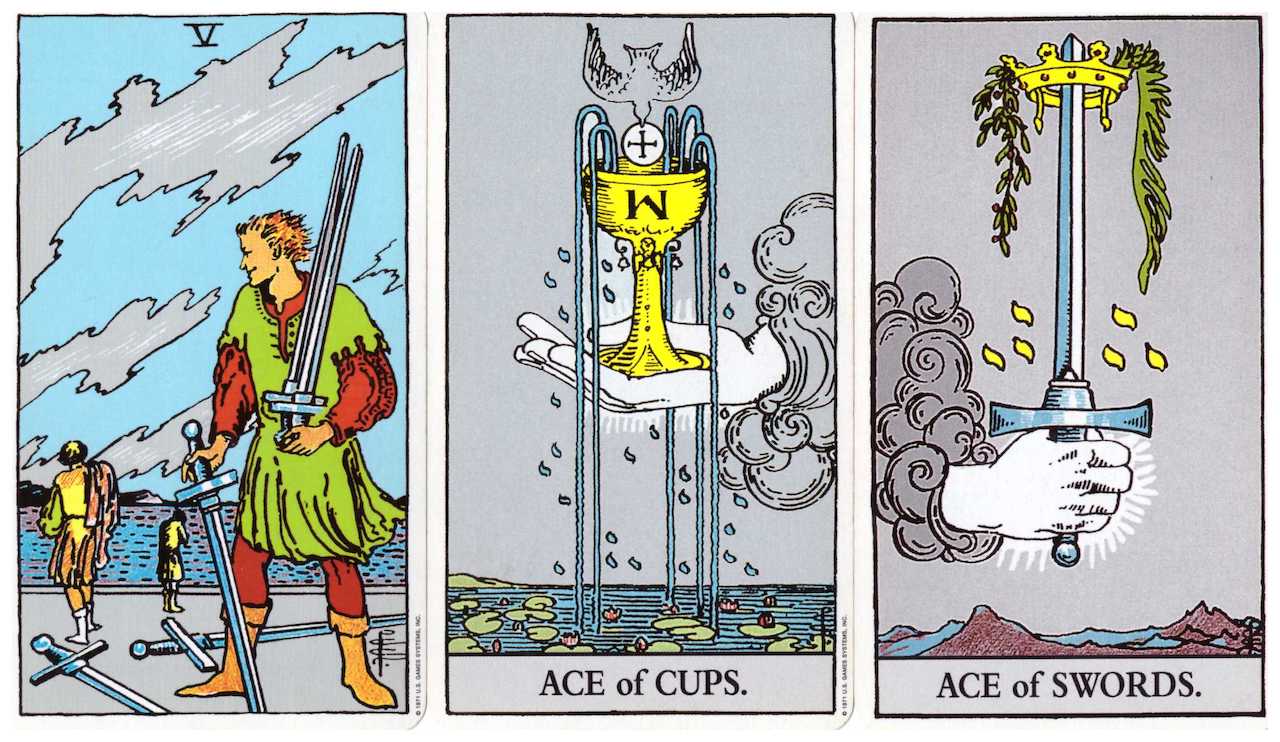 I see the two ace cards as one experience, one aspect that gets birthed from adversity. We sense this and feel it because we cannot continue to walk on a path that is filled with conflict. The key here is our ability to listen.