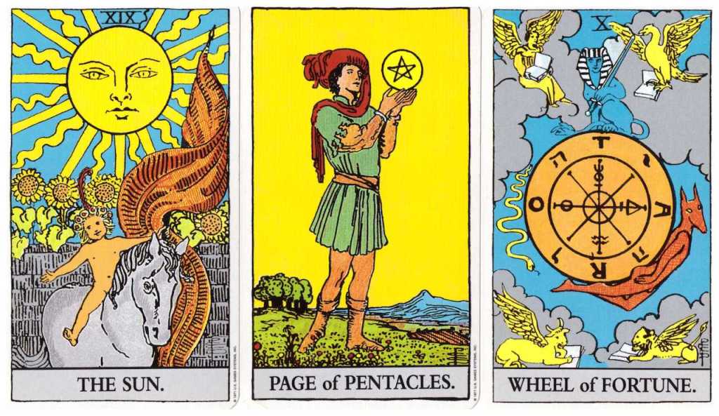 In this landscape where nothing is expected and everything is possible, The Wheel of Fortune turns. A change occurs and takes us to something new. This card almost always signals a time of positive growth. The cards preceding it only highlight this meaning.